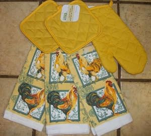 Yellow Pot Holders and Matching Rooster Dish Towels: Home & Kitchen