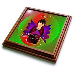 Product Description : Size: 8x8 Trivet with 6x6 ceramic tileChristmas Angel Baby Girl Praying With Let There Be Peace On Earth Text Trivet is measuring 8w x 8h x .75d. Made of solid wood with padding on back that protects your furniture. Framed trivet comes with 6w x 6h ceramic gloss tile attached to the wood frame.