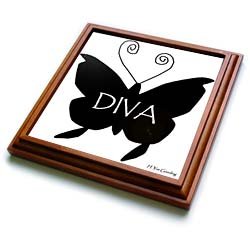 Product Description : Size: 8x8 Trivet with 6x6 ceramic tileDiva Butterfly in Black Trivet is measuring 8w x 8h x .75d. Made of solid wood with padding on back that protects your furniture. Framed trivet comes with 6w x 6h ceramic gloss tile attached to the wood frame.